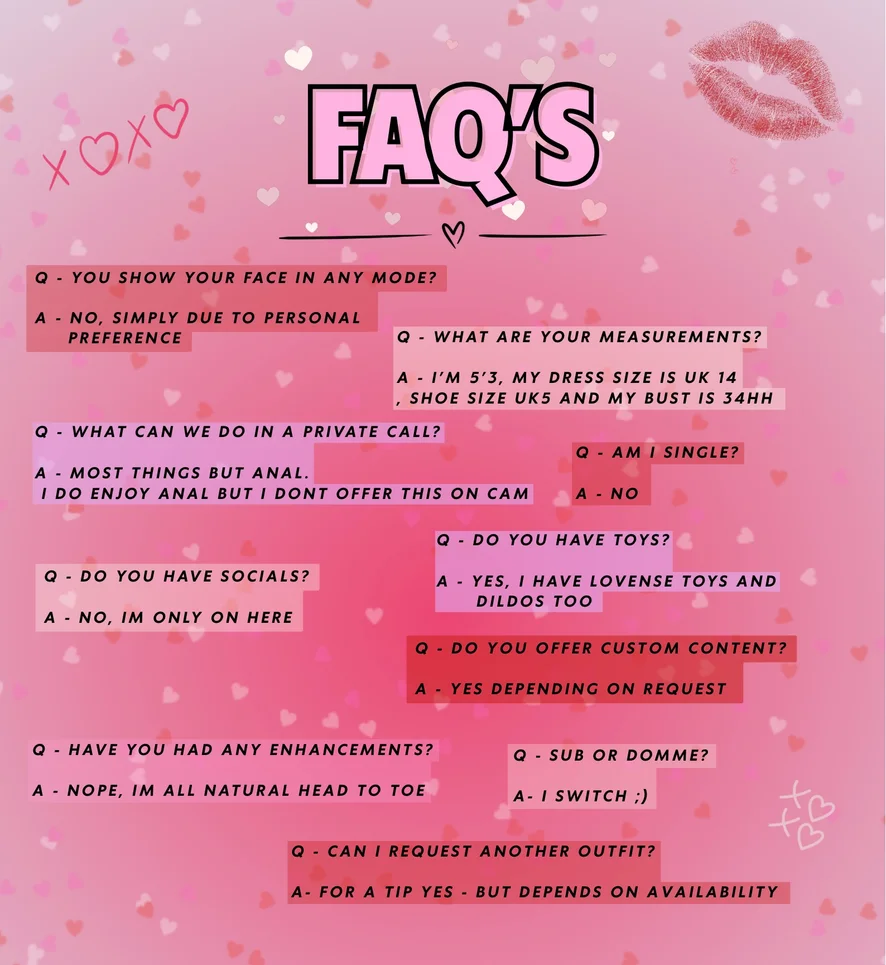 Dildo atau Vibrator, Meraba, Berkedip, Fetish Kaki, Handjob, Memukul, Blowjob, Tingkat Penis, Dirty Talk, Facesitting, Gundik, Nilon, Pertunjukan Minyak, Orgasme, Tittyfuck, Mainan Anal, Kaki Unta, Berselingkuh, Tenggorokan, Doggy Style, Mengepalkan tangan, Stimulasi kaki, Hardcore, Heels, Penghinaan, Masturbasi, Mainan Seks, Topless